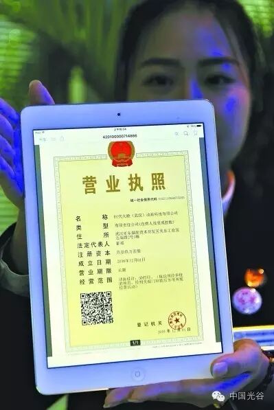 光谷开出武汉首张企业电子营业执照